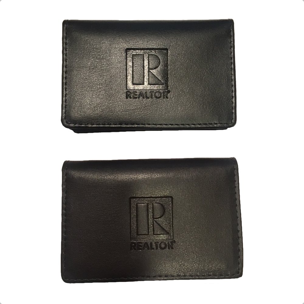 Executive Leather Wallet Business Card Holder Item: BC009 $14.95 Color Choose an optionBlackClear Executive Leather Wallet Business Card Holder quantity Quantity Discounts: Add to cart SKU: BC009 Categories: Business Card Holders, New Products, REALTOR® Products Description Additional Info Description Soft durable leather, turned edges and an ID window. Outside cover embossed with REALTOR® logo. Separate pocket for license or credit cards. Available in Black. Additional information Color Black
