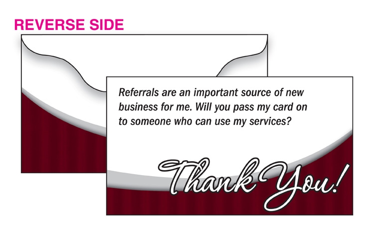 - Text reads: Thank You “Referrals are an important source of new business for me. Will you pass this card on to someone who can use my services?”