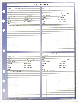 Standard FSBO – Expired – 5.5″ x 8.5″ (50 sheets) Item: SF018 $11.95 Standard FSBO - Expired – 5.5" x 8.5" (50 sheets) quantity Quantity Discounts: Add to cart SKU: SF018 Categories: Planners & Form Refills, Standard Refills – 5.5" x 8.5" Description Description Standard Size 5.5″ x 8.5″. 7 Hole punched to fit any ring binder.